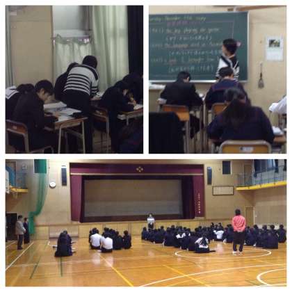 3連休明けの火曜日。3年生は学年集会でスタート。その後の授業では、どのクラスも落ち着いた雰囲気で集中した様子。今週末には「土曜授業」(クリックすると文書が閲覧できます)