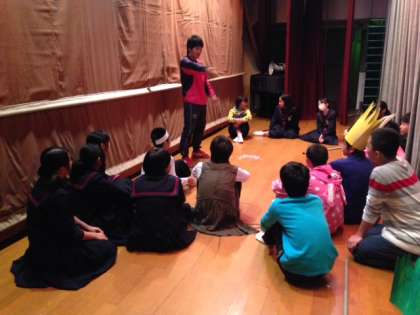 2年生の舞台練習です。役者生徒たちが担任の先生から演技指導を受けていました。