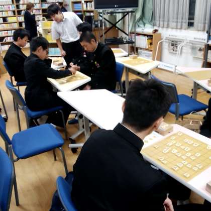 六段の先生にお越しいただき、放課後に図書館で将棋講座をしました。参加生徒は将棋に親しむ時間になっています。少しずつ上達して、対戦を楽しんでいます。