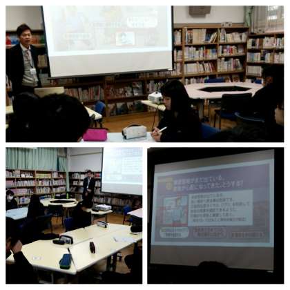 北区役所地域課の職員による防災学習プログラム。チームに分かれてゲームにチャレンジ。パネルのクイズやクロスワードを解きながら、防災の知識を身につけました。