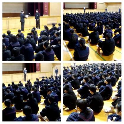 3学期が今日から始まります。3年生にとっては中学校生活の締めくくりの学期です。1、2年生は次の学年につながる学期、準備する学期となります。生徒の皆さんのさらなる飛躍や輝きが見られることを願っています。