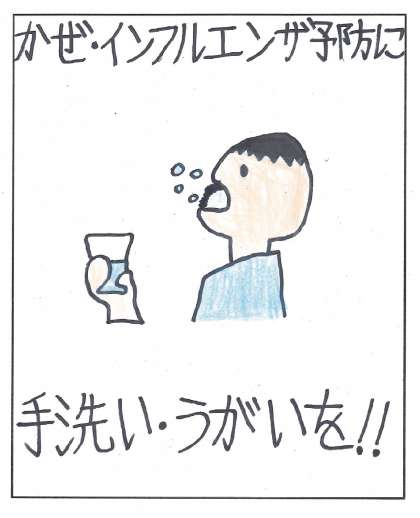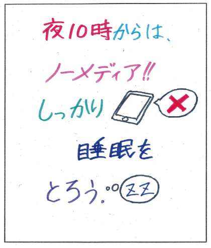 保健委員からの3回目のメッセージは、「かぜ・インフルエンザの予防には手洗い・うがいを!」「夜10時からはノーメディア」です。