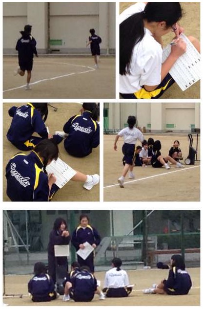 6時間目の気温は11度。寒さ本番のグランドでは1年生の女子が持久走に挑戦。ペアを組んで、走るバディの通過タイムを記録し声援を送る。ランナーは、その声援に応えて最後まで走り切る。走り終えた後は、各自でラップタイムを計算して記録する。寒さを吹き飛ばす授業のひとコマでした。