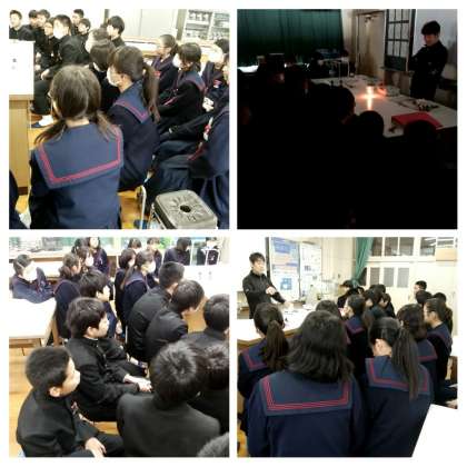 「電流の性質とその利用」の単元を学習しています。今日の授業では、理科室で実験を行い、静電気による現象や電流による発熱現象を学びました。身のまわりにあるもので作った電球が灯ったときには、歓声が上がりました。