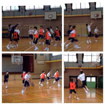 男子の体育の授業はバスケットボール。試合形式の時間帯には、球技の得意な生徒が苦手な生徒に取りやすいパスを送るなど、チームメートを慮ることも大切なポイント。体育の授業を通して、バスケットボールの技術だけでなく、互いを思いやる心も育てていきます。