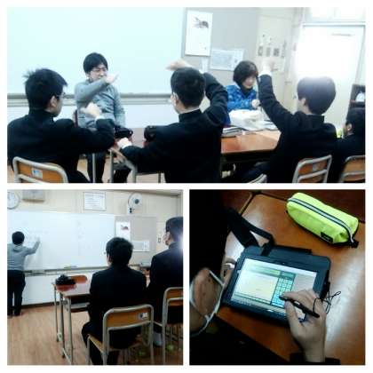 今日の3時間目の授業では、タブレット端末を使って数学(平行線の角度・円周角)を学習しました。タブレット端末では、スモールステップでの学習ができ、たくさんの問題を解くことができます。ICT機器を活用して授業をしています。