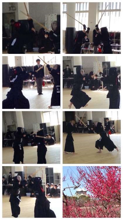 梅林の梅の花が春の到来を告げるように咲く大阪城。修道館での大会は、まずは、女子の団体戦。1年生の3人で試合に挑み、一人ひとりが果敢に攻めて、審判の先生の旗が上がりかける場面もありましたが、残念ながらの敗戦。しかし、この経験は、明日からの稽古につながることでしょう。午後には男子の団体戦が行われます。