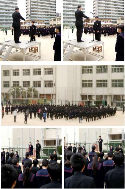 今日の全校集会はまず伝達表彰を行いました。15日(土)「市長・教育長表彰式」において受賞した生徒に伝達表彰しました。13日(木)大阪市学校歯科保健研究大会において、本校の歯科保健に関する取組が評価されて受賞しました。保健委員長に伝達表彰しました。
