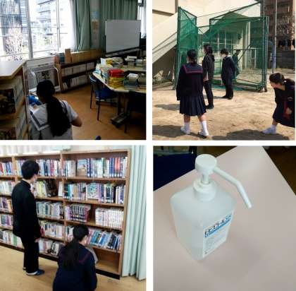 図書館を開館し、図書の貸し出しをしました。今日、登校した生徒は、手指の消毒や健康チェックをして、十分に換気された図書館で本に親しみました。