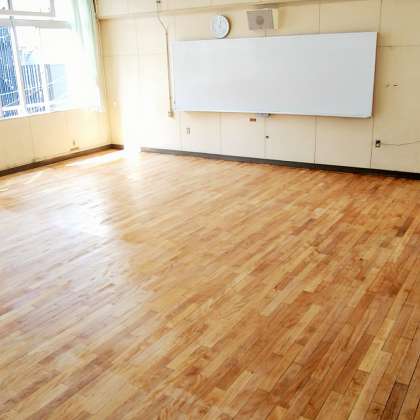 サポートルーム2の床を補修工事しました。これまでの床は、汚れて傷んで、黒くなっていました。古い床板の表面を削り取って、大きなゴミ袋3袋分も削りカスが出ました。