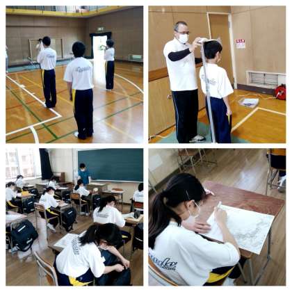 1年生は身体測定・視力検査を行いました。教室では、担任の先生との教育相談とともに、学習課題の配付・回収、学習状況の確認をしました。