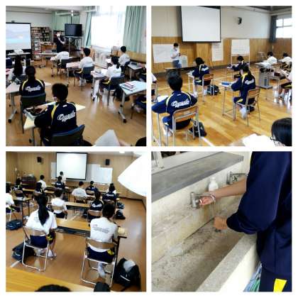 3年生は今週3回ある登校日に、他の学年に先行して授業を再開します。久しぶりの授業です。真剣な表情で学習していました。