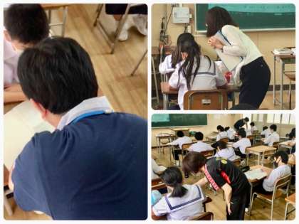 1年生は乗法と除法の混じった計算、2年生は連立方程式とその解き方を学習しています。今日の2年生数学の授業は、学級生徒を2分割し、少人数で授業しました。わかる喜びを増やしたいと思います。