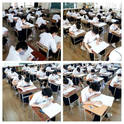 今年度の1学期は中間テストを行っていません。また、期末テストは例年3日間ですが、授業時間を確保するため、今年度は2日間で実施しました。授業以外に放課後の図書館開放や家庭学習で、テスト勉強に励んだ成果を出し切ってほしいと思います。