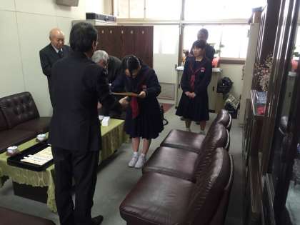 平成26年度中学生「税に関する作文」に3年生が応募し、受賞した生徒に表彰状が授与されました。