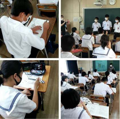今日から2学期です。始業式は放送で行いました。夏休み中に部活動で活躍した生徒の表彰を放送で読み上げ、教室では受賞生徒を拍手でたたえました。(少林寺拳法部、テニス部、バドミントン部)(写真右上)
