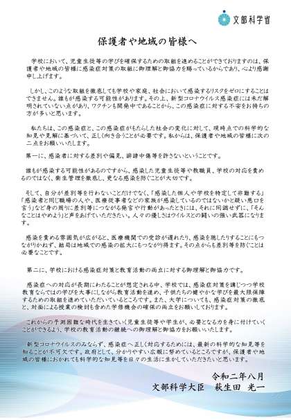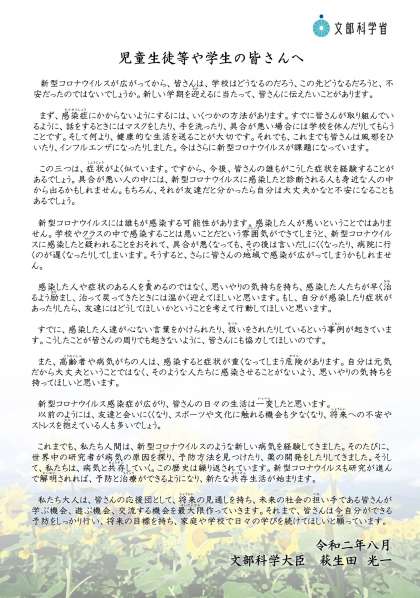 文部科学大臣メッセージ