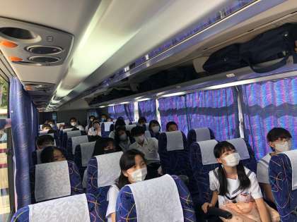 ガイドさんの説明を集中して聞いています。