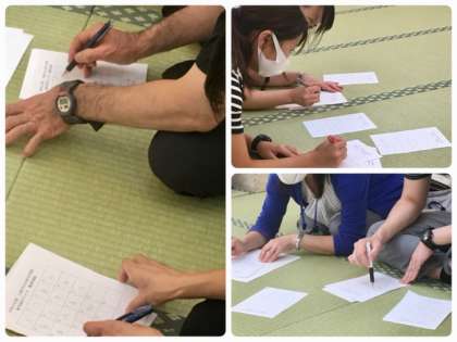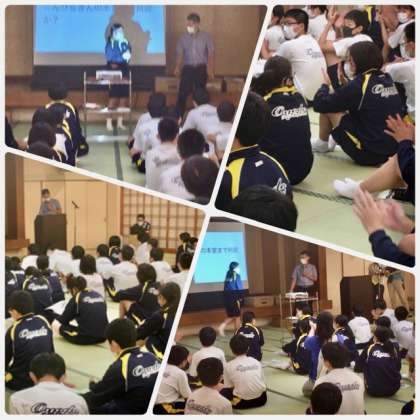 夕食が終わり、8時40分から「学年集会」です。学年集会?なんやろ?シークレット?と生徒たちが玉栄の間に集まって来ました。