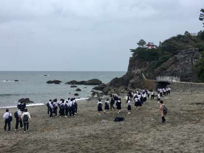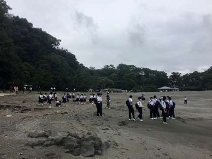桂浜です。お天気も少し落ち着いてきました。これから学年写真を撮影します。