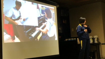 この3人は歌と楽器の演奏を披露してくれました。事前に学校やお家で撮ったビデオ音声に合わせての生歌でした。