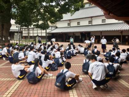 金刀比羅宮散策を終えて生徒たちは集合場所「金陵の郷」に集まってきました。ここで検温し次は中野うどん学校で、讃岐うどん作りの体験をします。