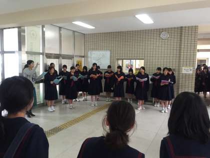 2学期終業式の後、本校の玄関ホールにおいて、合唱部がコンサート行い2曲披露しました。下校する生徒も立ち止まり、聞き入っていました。