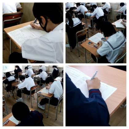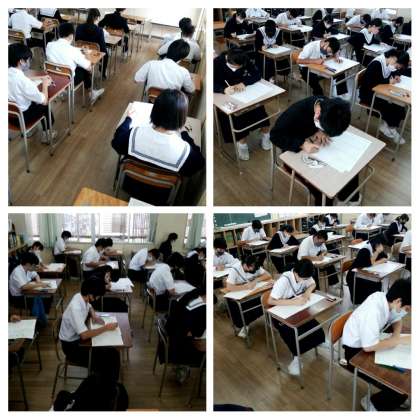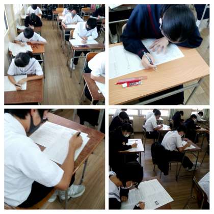 日々の授業での学習とテスト期間中に取り組んだ成果をしっかり出せるよう、時間いっぱい取組んでいます。