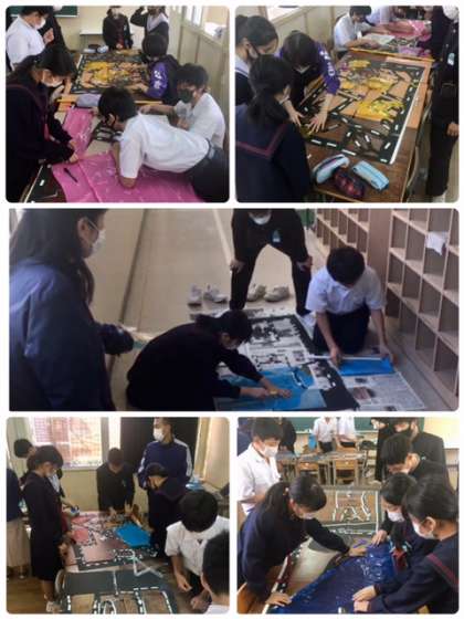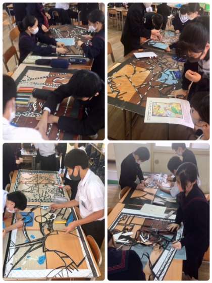 2年生は、ステンドグラスの製作に取り組んでいます。文化祭の当日が楽しみです。みんなで力を合わせて素晴らしい作品を作ってください。楽しみにしています。
