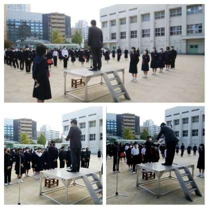 秋が深まりました。実りの秋です。3年生は進路懇談、実力テスト、期末テスト(全学年)と続きます。学習の面でも実りがあるようにしてください。