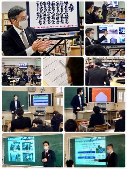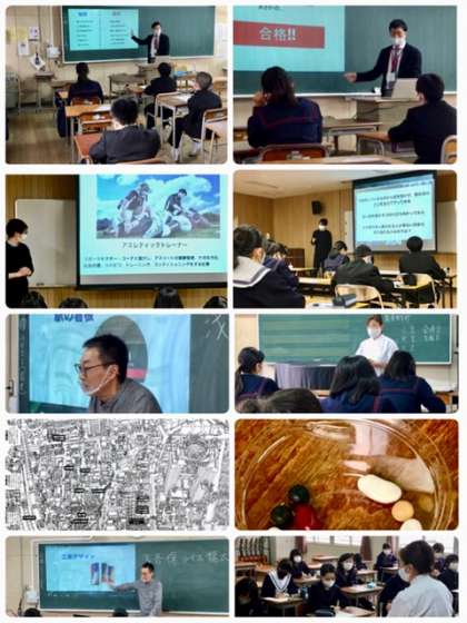 7つの事業所から講師をお招きして、職業講話を行いました。講師の方のこれまでのキャリアや体験談をお話しいただきました。自分自身の将来を考える機会として有意義な時間になりました。