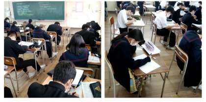 21日(土)は午前中4時間の土曜授業を行っています。各教室では、生徒が集中して取り組んでいる様子が見られます。新型コロナウイルス感染症により休業した期間の補充授業です。
