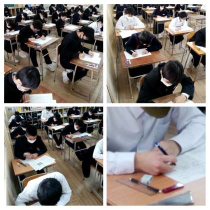 本校のめざす子ども像の1つである『努力を継続して最後までやり抜く』を、テストの場面でも生徒たちは実践しています