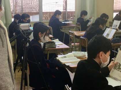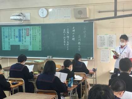 大淀中学校では、教員の授業力の向上と生徒の学力向上に取り組んでいます。ビデオカメラやリモート(Teams)システムを活用し、教育委員会のご指導の下、授業研究を行っています。