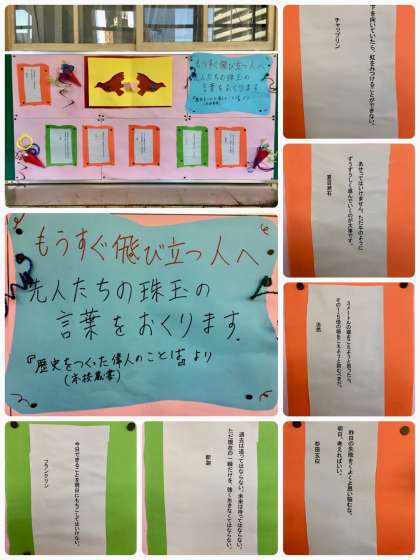 2月に入り、図書館の掲示板が卒業生に向けてリニューアルされています。3年生の生徒の皆さんは、いよいよ私立高校入試本番ですが図書館に足を運んでください。