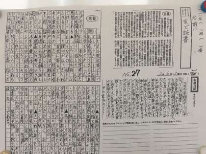 今週も職員室前の掲示板に「『余禄(新聞の社説)』書き写し」の秀作が掲示されています。私(校長)は、いつもこの掲示物を見ることが楽しみです。