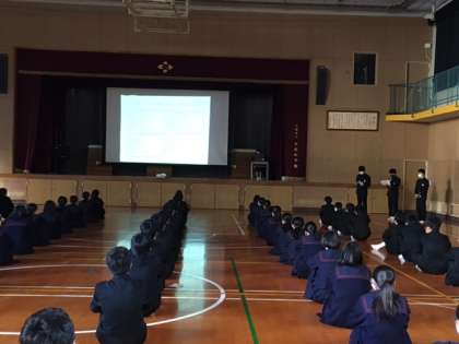 また、新型コロナウイルス感染症対策として、「新しい生活様式」を行ってきました。保健委員や全校生徒が取り組んだ内容を振り返り、今後も継続して感染症対策を行っていこうと締めくくってくれました。