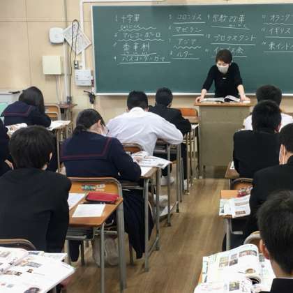 2年生の授業の様子です。1組は社会、2組は理科、3組は音楽の学習をしています。