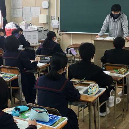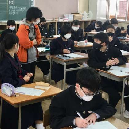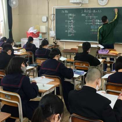 1年生の授業の様子です。1組は英語、2組は社会、3組は数学を学習しています。