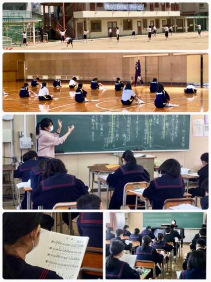 1年生授業の様子です。1組は体育、2組は国語、3組は国語の学習です。