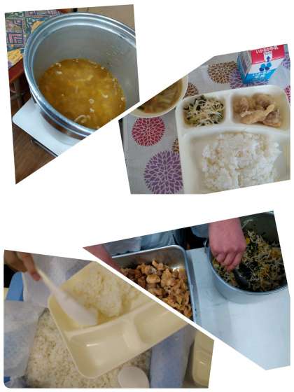 4月20日(火)、今日の給食は、鶏肉のからあげ・中華スープ・チンゲンサイともやしの甘酢あえ・ご飯・牛乳です。