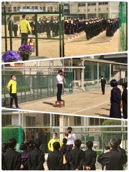 おはようございます。今朝も朝から快晴です。グラウンドでは、1年生が学年集会を行なっています。
