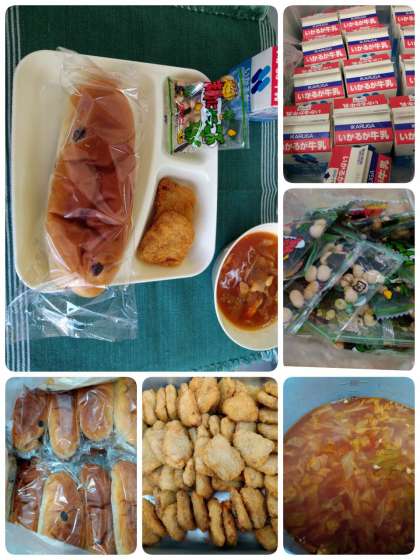 5月6日(木)の給食は、一口トンカツ・ミネストローネ・豆こんぶ・レーズンパン・牛乳です。