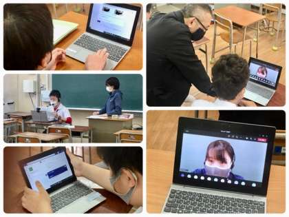 今朝8時30分から、1人1台パソコンを活用して、オンライン朝学活を行いました。