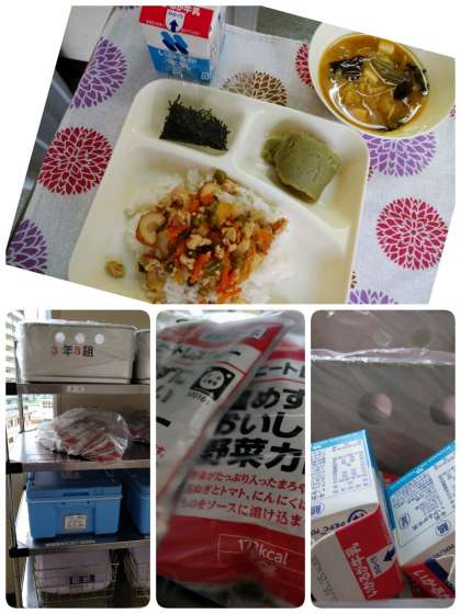 3年生の給食は、ヒートレスカレー・ご飯・牛乳です。(写真下段)