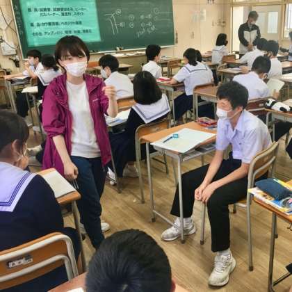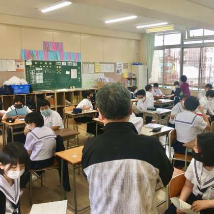 2年生理科はジグソー学習で「唾液による澱粉の分解」について、グループワークをしています。とても活気のある授業でした。