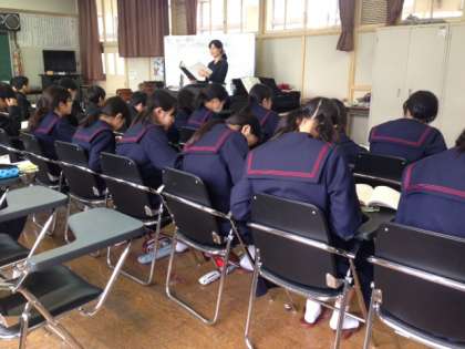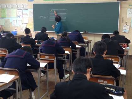 1年生の4時間目、1組 音楽、2組 家庭、3組 英語 の授業の様子です。