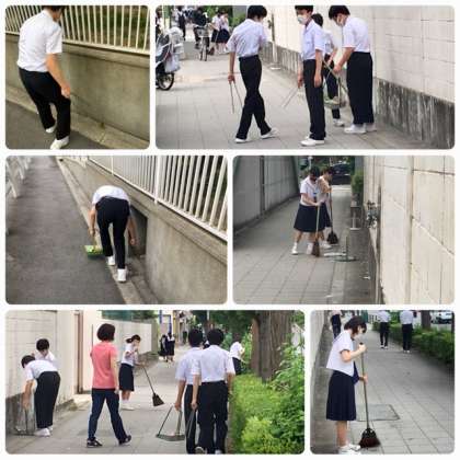 金曜日の朝は、大淀中学校伝統の早朝清掃の取り組みです。午前8時、学年ごとに集合しました。学校周辺をキレイに学習環境を整えます。生徒のみなさんありがとうございます。