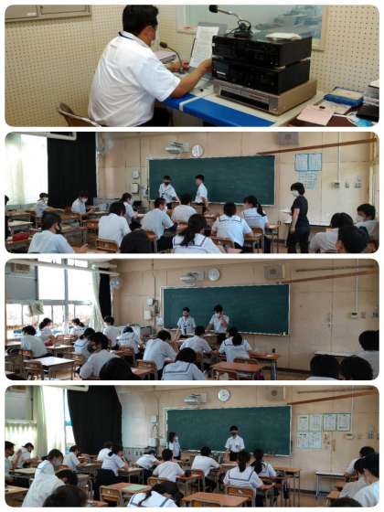 6月11日(金)の6限は、「いじめについて考える日」です。今年はコロナ禍で、放送による校長先生の講話を各クラスで聞きました。その後、各クラスで委員長を中心に自分の事として考える活動をしました。