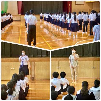 毎週、火曜日の朝は3年生が学年集会を開いています。今朝のお話は木村先生です。進路指導に関わってお話ししてくださいました。新聞コラムの書写し「天声人語」にも、進路に関わる気持ちを書いている生徒が多いと話されました。あと1週間ほどで1学期末テストが行われます。今できること、今やらなければならないこと、しっかりお願いします。